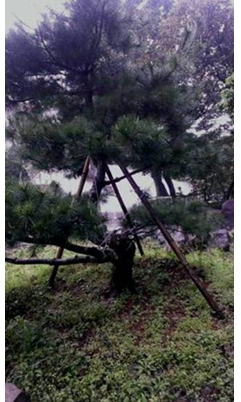 但卻用長長的竹支架固定, 結果把優美的樹型都破壞了